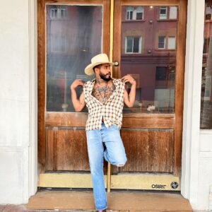 RAD 1980S WHITE FRINGED LEATHER BANDANA WITH CONCHOS