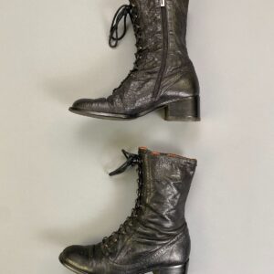 LEATHER LACE UP CAP TOE SIDE ZIP STACKED HEEL GRANNY BOOTS