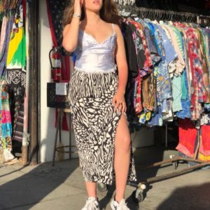 LONG SKIRT 80\S PRINT LOW SIDE SLIT