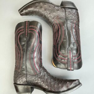 BLACK & OXBLOOD LEATHER COWBOY BOOTS OSTRICH FRONT PANEL, RED DECORATIVE STITCHING