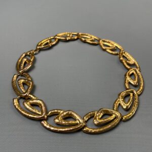 ABSTRACT SPIRAL SHAPE HAMMERED GOLD CHAIN LINK CHOKER NECKLACE