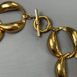 1980S-90S HIGH POLISHED LIGHTLY HAMMERED OVERSIZED CHAIN LINK STATEMENT NECKLACE TOGGLE CLOSURE