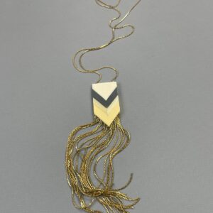 LAYERED CHEVRON DESIGN MULTI-TONED HORN & BONE PENDANT NECKLACE BRASS CHAIN LINK