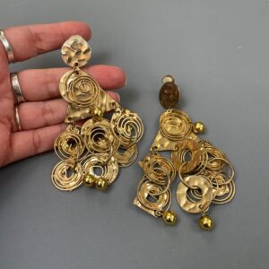 HAMMERED GOLD TRIANGLE & SWIRL MULTI TIERED DROP EARRINGS
