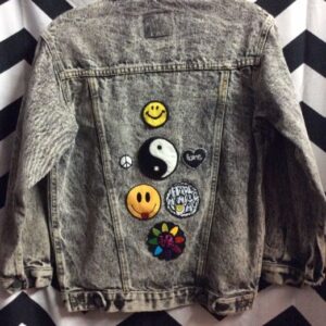 DENIM JACKET – BUTTON-UP – ACID WASH – SMILEY FACE PATCHS