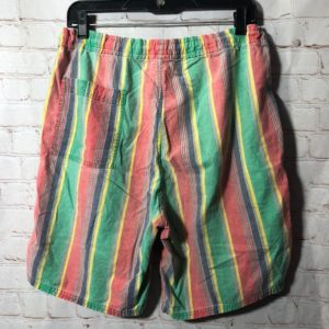 STRIPED COTTON SHORTS ELASTIC WAIST W/ DRAWSTRING & BACK POCKET