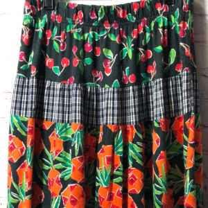 MAXI SKIRT W/ FRUIT-FLOWERS-STRIPES & PLAIDS IN HORIZONTAL PATTERN & ELASTIC WAIST