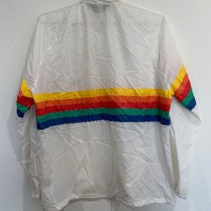 RETRO HORIZONTAL STRIPED RAINBOW DESIGN WINDBREAKER TEXAS DRAWSTRING BOTTOM