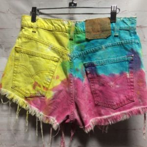 TIE-DYED HEAVILY DISTRESSED LEVIS DENIM SHORTS W/ HIGH WAIST & RED TAG