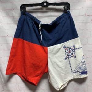COTTON COLOR-BLOCK DESIGN W/ NAUTICAL PRINT SWIM TRUNKS