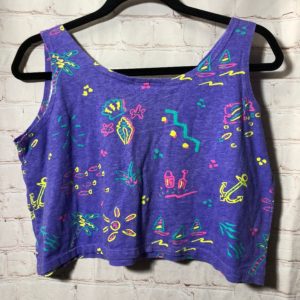 1980’S NEON COLORED ANCHOR & FISH PATTERNED COTTON CROP TOP