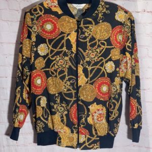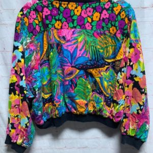 1980S CROPPED ZIPUP COTTON JACKET WATERCOLOR FLORAL PRINT SEQUINS made in India
