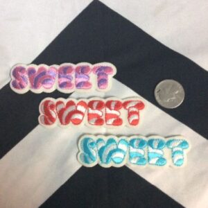 1980’S EMBROIDERED PATCH – SWEET – CANDY STRIPES
