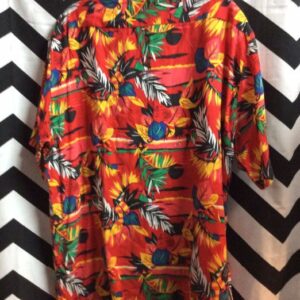 HAWAIIAN SHIRT – POLYESTER – FLORAL W/LEAF & BRANCH DESIGN