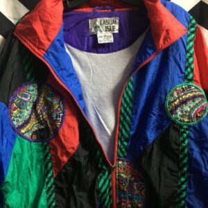 WINDBREAKER COLOR BLOCK DESIGN W/ ROUND PAISLEY PATCHES