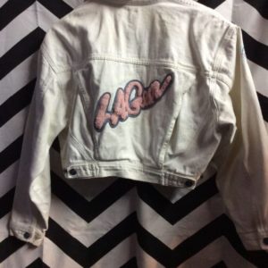 1980’S CROPPED LA GEAR DENIM JACKET W/ CHENILLE PATCHES