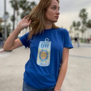 PAPER THIN CRACKLED GRAPHIC MILLER LITE A FINE PILSNER BEER T-SHIRT