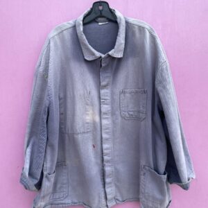 SUN FADED AND DISTRESSED FRENCH WORKWEAR CHORE JACKET W/ PAINT SPLATTERS