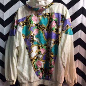 1990S WINDBREAKER ZIP-UP W/FLORAL & LEOPARD PRINT