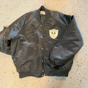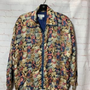 1990S SILK Teddy bear and American flag PRINT Windbreaker BOMBER JACKET Polo Bear Style AS-IS