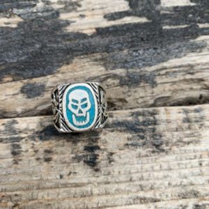 SKULL WITH CRUSHED TURQUOISE STONES MOTORCYCLE BIKER RING