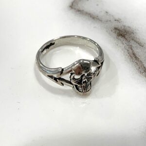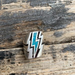LIGHTNING BOLT WITH CRUSHED TURQUOISE INLAY MOTORCYCLE BIKER RING