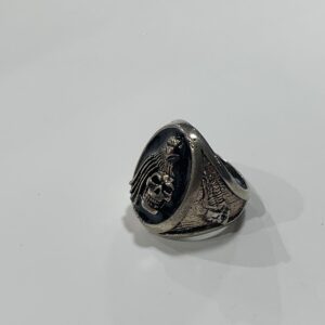 LARGE WINGED BAT OUT OF HELL SKULL BIKER RING