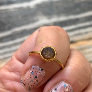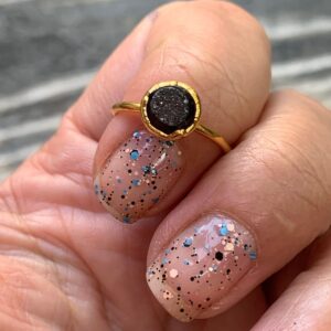 MIDNIGHT BLACK DRUZY SMALL GOLD PLATED NATURAL CRYSTAL STONE DRUZY QUARTZ MIDI RING SIZE 5