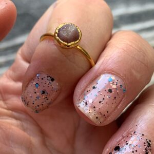 MAUVE SMALL GOLD PLATED NATURAL CRYSTAL STONE DRUZY QUARTZ MIDI RING SIZE 6