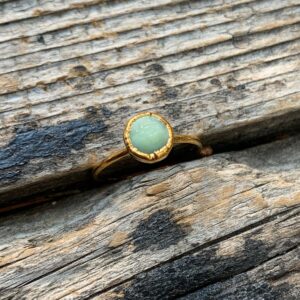 BRIGHT GREEN DRUZY – SMALL GOLD PLATED NATURAL CRYSTAL STONE RING SIZE 7