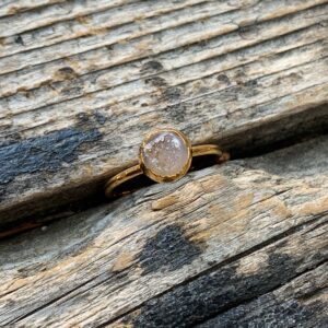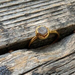 LIGHT GRAY SMALL GOLD PLATED NATURAL CRYSTAL STONE QUARTZ DRUZY RING SIZE 7