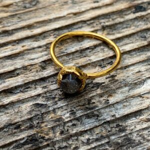 SMOKEY BLACK SMALL GOLD PLATED NATURAL CRYSTAL STONE DRUZY QUARTZ RING SIZE 6