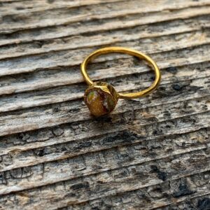 BROWN SMALL GOLD PLATED NATURAL CRYSTAL STONE DRUZY QUARTZ MIDI RING SIZE 7