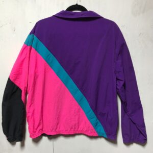 1980S DIAGONAL COLOR BLOCK WINDBREAKER ZIP-UP JACKET MOCK NECK MADE IN USA AS-IS