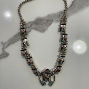 SQUASH BLOSSOM STONE & SHELL INLAY OWL DESIGN NECKLACE *SIGNED P. NATEWA