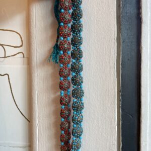 AMAZING METAL FLOWER BLUE & RED STONE INLAY BRAIDED CORD TIE BELT
