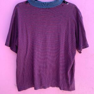 AS-IS PERFECTLY THRASHED & DISTRESSED STRIPED UNIVERSITY OF MIAMI SINGLE STITCH T-SHIRT