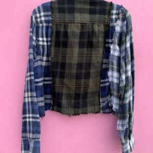 REWORKED MIXED PANEL CROPPED FLANNEL BUTTON UP SHIRT AS-IS