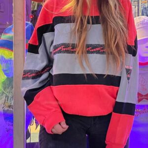 8-30 COLORFUL CROSS STRIPED RIBBED LONG SLEEVE CREW NECK SWEATSHIRT