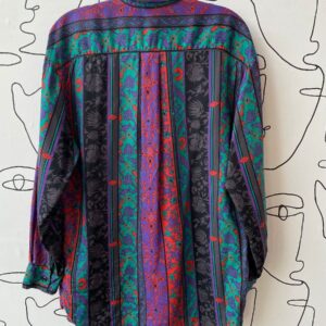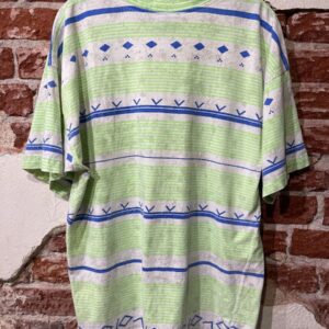 AS IS – 1990S BRIGHT STRIPED DIAMOND PRINT MOCK NECK T-SHIRT