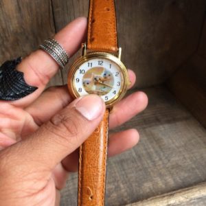 WRISTWATCH GOLD GENUINE BROWN LEATHER STRAP CUTE CAT KITTEN FACE JAPAN MOVT