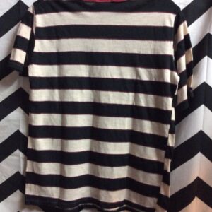 TSHIRT VINTAGE THIN SOFT RED COLLAR BLACK STRIPES