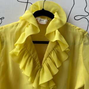 1960S SHEER RUFFLE COLLAR & SLEEVE BUTTON UP BLOUSE