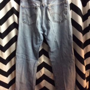 CLASSIC LEVIS DENIM JEANS – 501 – RED TAB – ACID WASHED – FRAYED POCKET & LEG