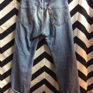 CLASSIC LEVIS DENIM JEANS – 505 – RED TAB – ACID WASHED – FRAYED – PATCH WORK