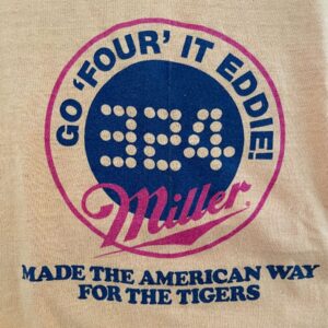 GO FOUR IT EDDIE! MILLER BEER LOGO SLEEVELESS T-SHIRT RIBBED COLLAR & CUFFS