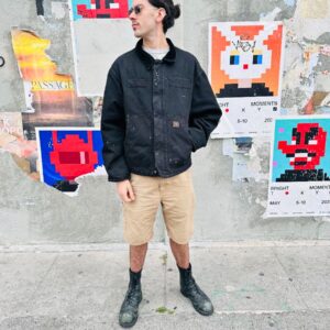 AS-IS OVERDYED CARHARTT CHORE JACKET W/ CORDUROY COLLAR AND SATIN LINING