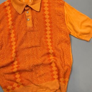 *AS-IS* MENS 1960S BANLON DOUBLE KNIT COLLARED POLO SHIRT TEXTURED ARGYLE DESIGN