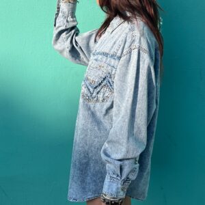 1990S OVERSIZED MEDIUM WASH HARLEY DAVIDSON DENIM JACKET LEATHER BACK PATCH