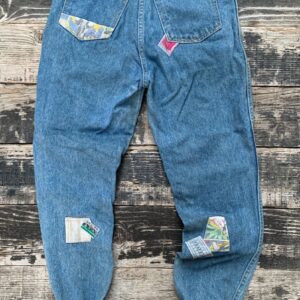 RAD 1980S DENIM COMIC BOOK PATCHED ZIPPER FLY HIGH WAISTED DENIM JEANS AS-IS